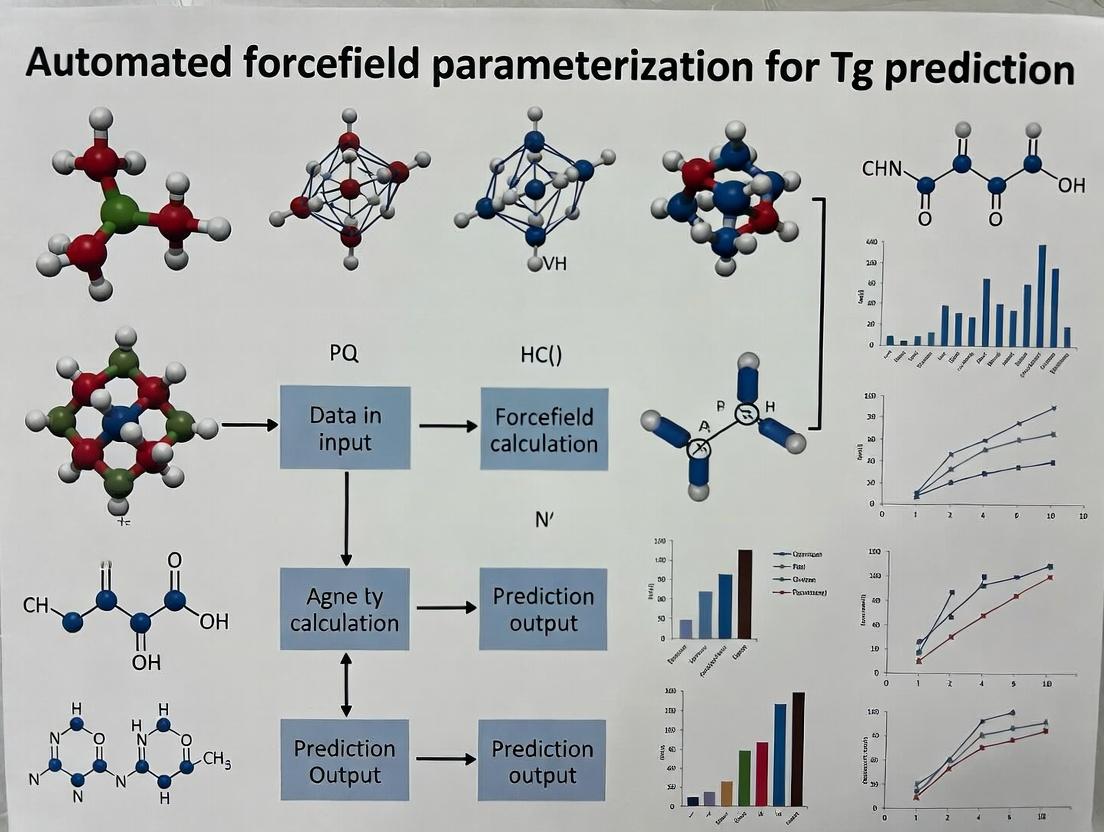 Automated forcefield parameterization represents a paradigm shift in computational materials science for drug development, transforming Tg prediction from a labor-intensive, expert-dependent task into a robust, high-throughput screening tool. By integrating foundational theory, automated methodologies, systematic troubleshooting, and rigorous validation, this approach provides a reliable bridge from molecular structure to critical performance properties. For biomedical research, this accelerates the design of stable amorphous solid dispersions, reduces experimental attrition, and enables a more rational formulation strategy. Future directions will likely involve tighter integration with AI-driven drug design platforms, extension to biological macromolecules, and the creation of community-wide, standardized benchmarking datasets, ultimately strengthening the pipeline from preclinical discovery to clinical viable drug products.