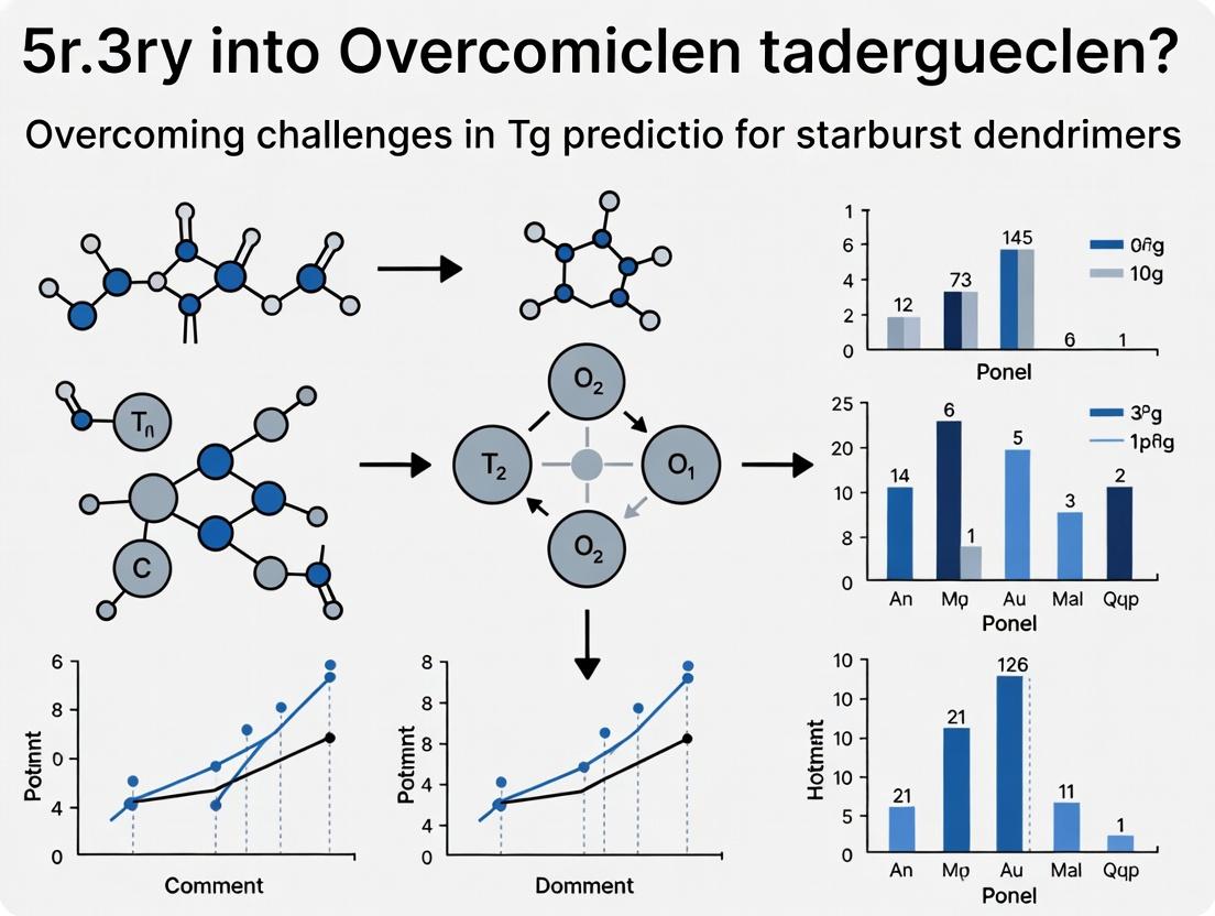 This article provides a comprehensive guide for researchers and drug development professionals on overcoming the significant challenges in predicting the glass transition temperature (Tg) of starburst dendrimers.