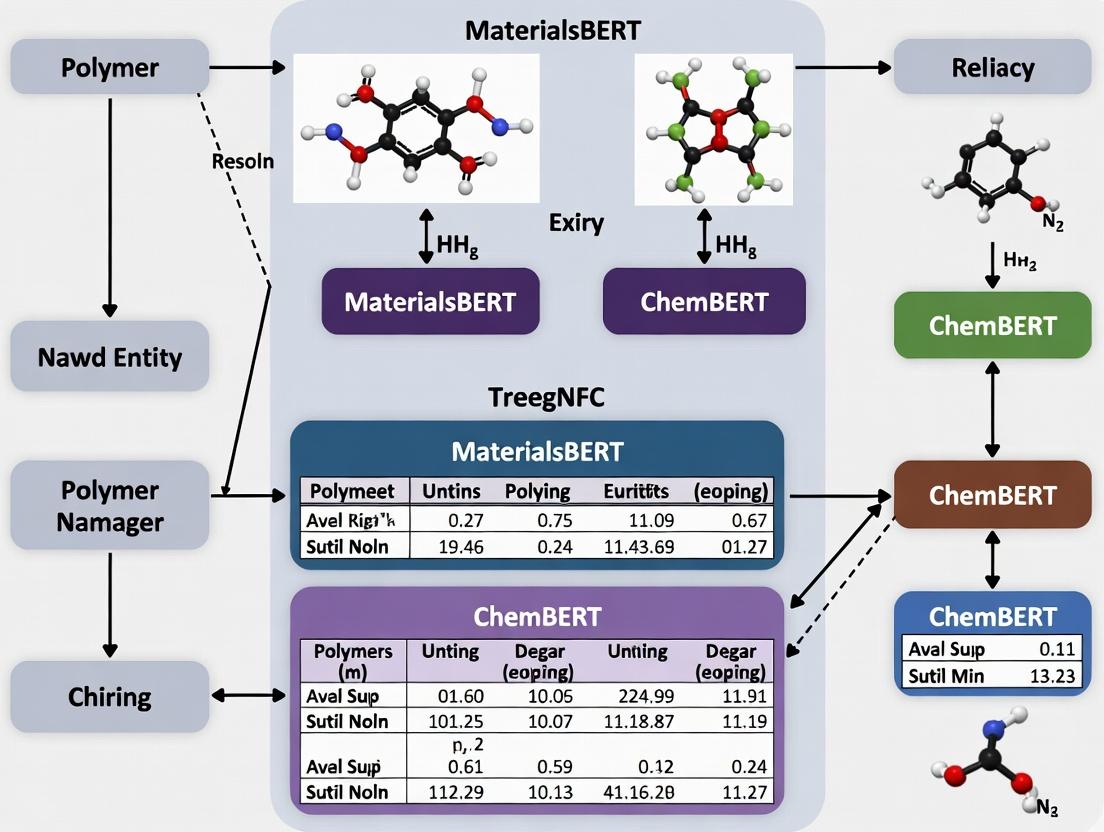 This comparison guide objectively evaluates the performance of MaterialsBERT and ChemBERT, two transformer-based models, on Named Entity Recognition (NER) tasks for polymer science texts. The analysis is framed within ongoing research to determine the most suitable model for extracting polymer names, properties, and synthesis methods from scientific literature, a critical task for researchers and drug development professionals accelerating material discovery.