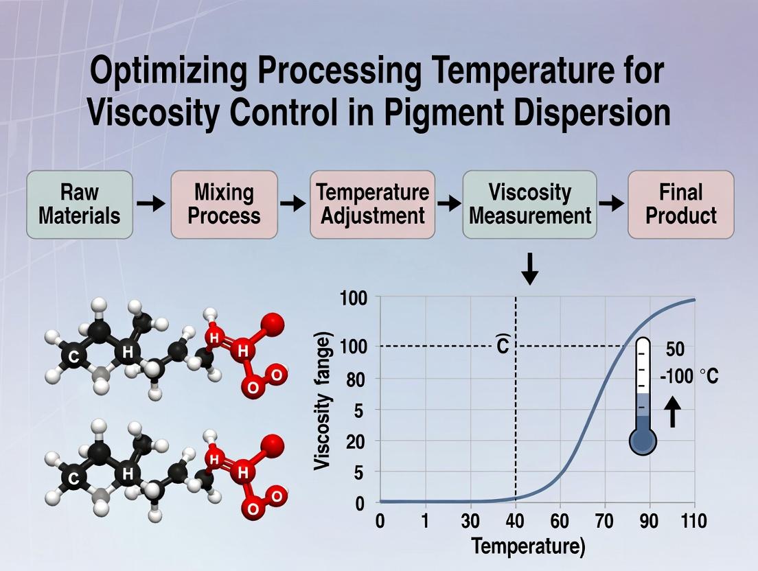 This article provides a comprehensive analysis of the critical relationship between processing temperature and viscosity control in pigment dispersions for pharmaceutical applications. We explore the foundational principles of temperature-viscosity dynamics, present methodological approaches for process optimization, address common troubleshooting scenarios, and validate findings through comparative analysis of dispersion technologies. Aimed at researchers and drug development professionals, this guide synthesizes current best practices to enhance formulation stability, reproducibility, and performance in biomedical products.